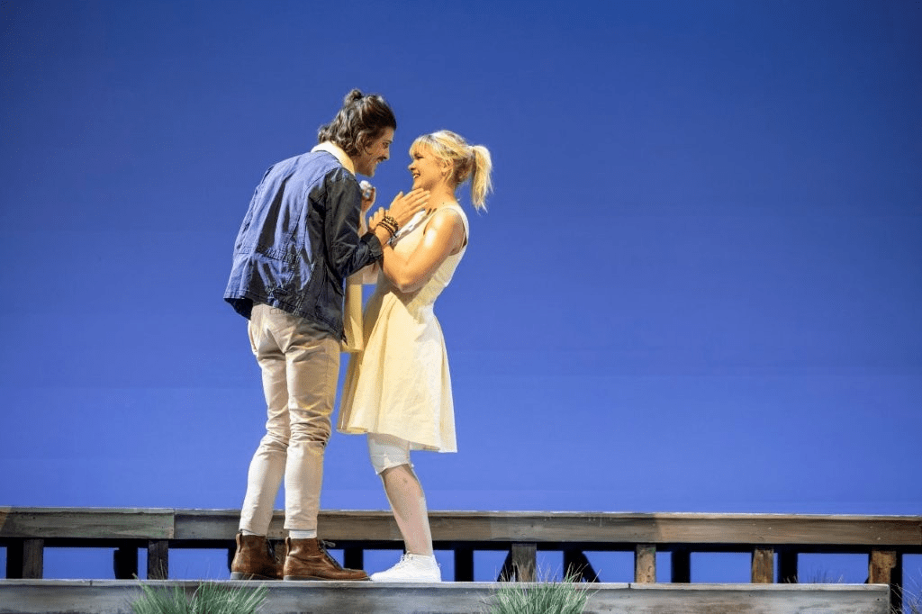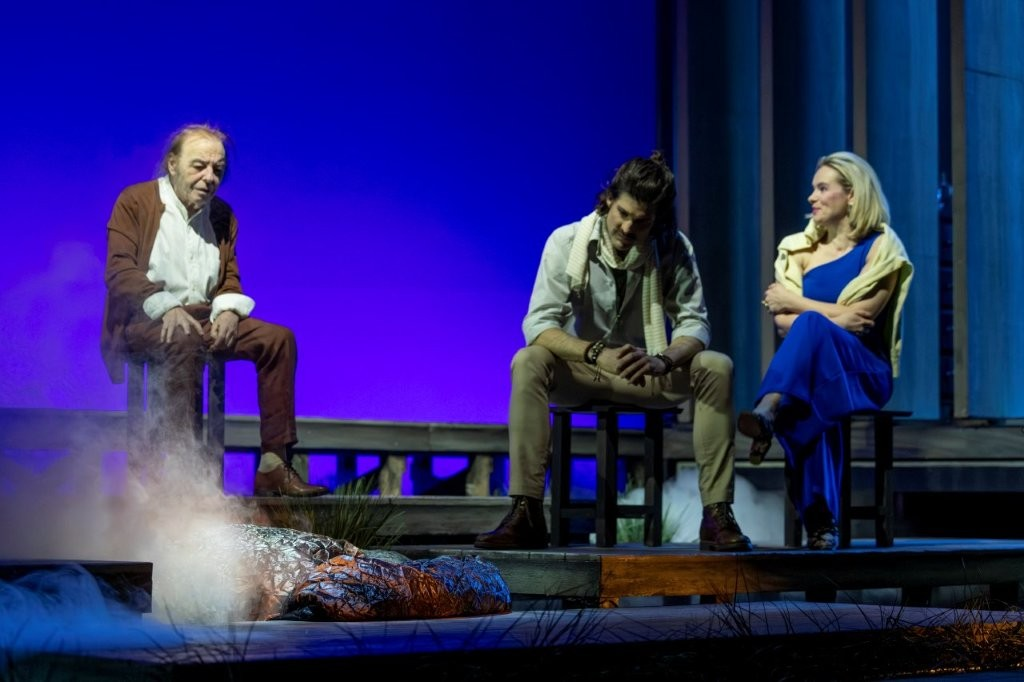 La mise en scène privilégie un décor dépouillé, question de décalquer à la perfection l’intensité des turbulences émotionnelles de l’histoire : un grand ciel sans nuages, teinté de rose, quelques touffes d’herbe quelques pontons et l’étendue, par devers le public, d’un immense lac couvert de voix d’oiseaux pour engager au mieux l’imaginaire. Jusque-là, pas l’ombre d’une mouette ! Catherine Cosme signe cette scénographie épurée, éclairée par les lumières très parlantes de Xavier Lauwers. La toile sonore de Loïc Magotteaux, épouse les moindres mouvements de l’âme.